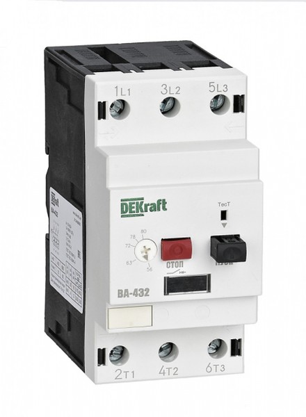Теги: Автоматический выключатель серии ВА-432 Dekraft; диапазон уставок тока 56 - 80 А; ном. раб. напряжение 690 В; сечение подключаемых проводников 10 - 25 кв. мм. Корпус устройства изготовлен из самозатухающей пластмассы. Автоматические выключатели защиты двигателя серии ВА-432 Dekraft предназначены для управления и защиты трехфазных асинхронных электродвигателей от короткого замыкания, перегрузки и выпадения фазы. Дополнительно доступен ряд аксессуаров, облегчающих работу с устройством.
