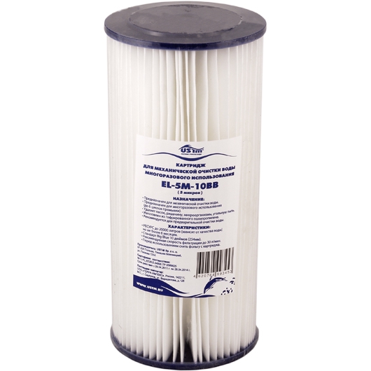 Картридж 10BB ГОФРИР. 5мкр USTM для многокр.(до 6 цикл.) мех. очистки воды от песка,грязи, ржав.