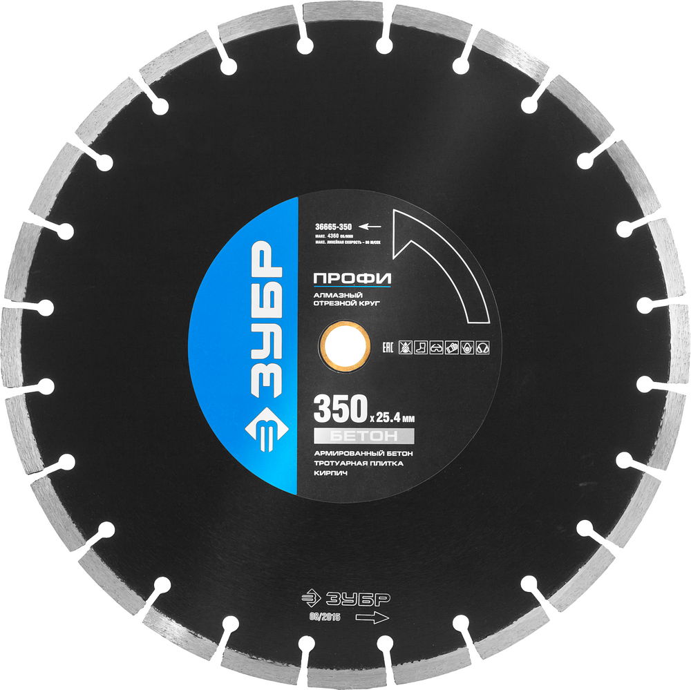 Алмазный диск, 350ммх25,4 сплошной , универсальная резка, по бетону и камню ЗУБР