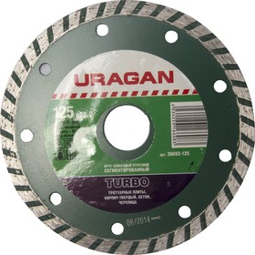 Алмазный диск, 125ммх22,2 TURBO , сегментированный, сухая резка, URAGAN