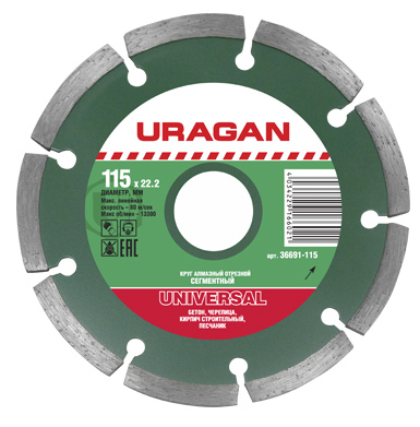 Алмазный диск, 230мм сегментный  ,сухая резка URAGAN Алмазный диск, 230мм сегментный  ,сухая резка URAGAN