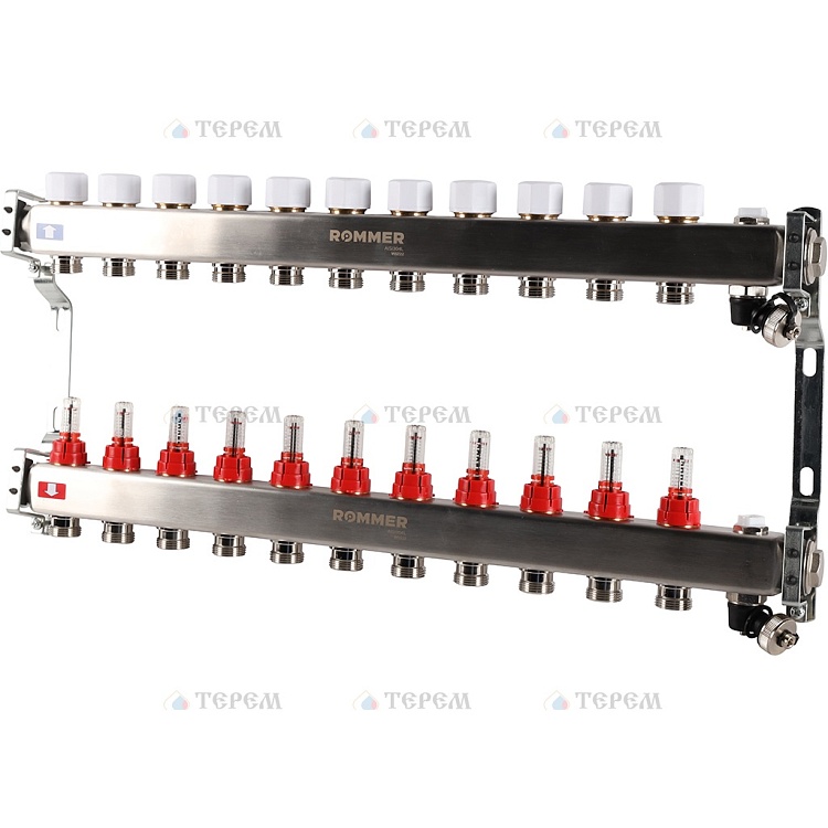 Кол. группа 1х 11 вых. с расх. нерж. ROMMER в сборе с клапаном вып. воздуха и сливом