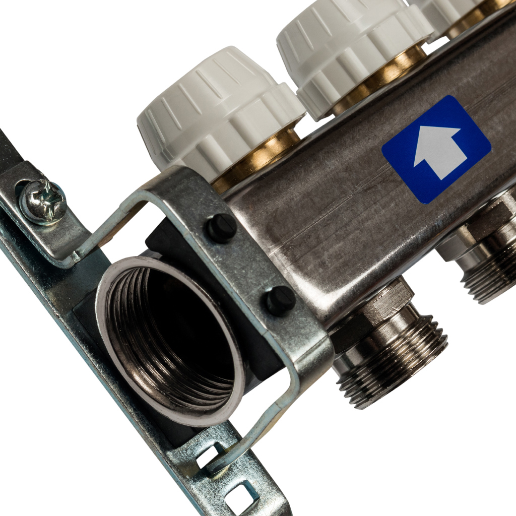 Кол. группа б/расх. 1х-6 вых. нерж. STOUT в сборе с клапаном вып. воздуха и сливом