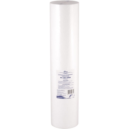 Картридж АКВАБРАЙТ ПП-5М-20ББ изготовлен из спеченного полипропилена с пищевым допуском.