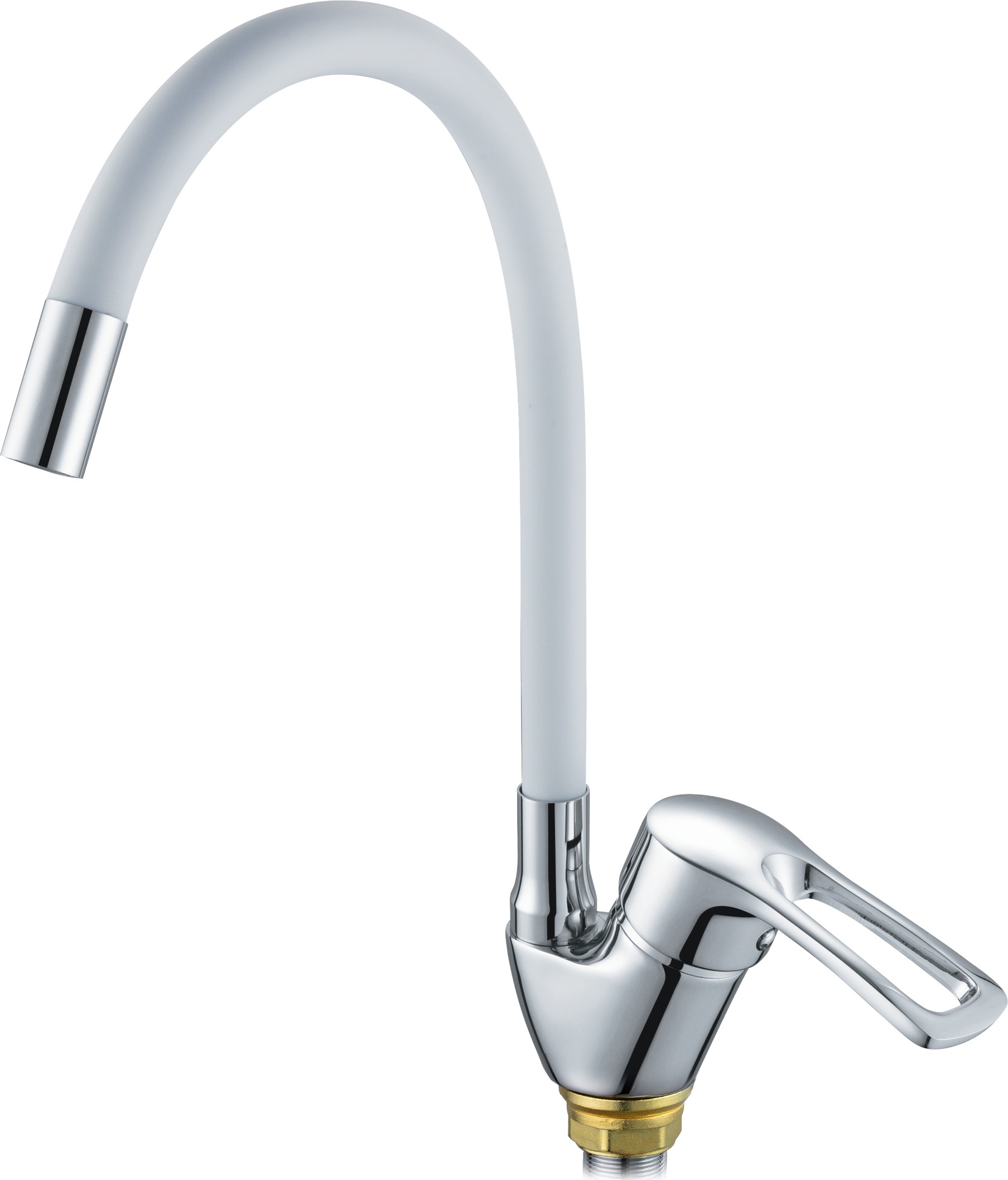 Смес. кухня 1-рук. бок. FAUZT бел. гибкий излив, с гайкой FZs833-B129