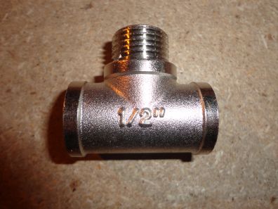 Тройник (резьба: внутренняя / наружная / внутренняя) – фитинг для создания отвода в трубопроводах, монтируемых из металлических труб. Отвод формируется под прямым углом к основной трубе. Разъёмы для основной трубы имеют внутреннюю резьбу, для отвода – наружную. Все трубы, соединяемые таким тройником, должны иметь равный диаметр.