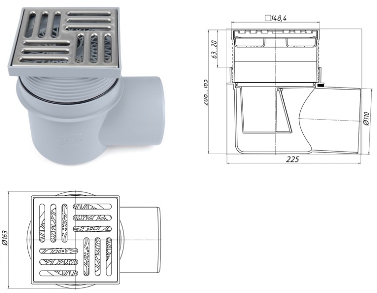 Трап гориз.110 нерж. реш. 15х15 регул. TA1612 АНИ (10)