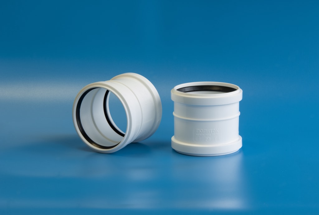 Муфта двухраструбная белая из полипропилена 110 мм Политэк для бесшумной канализации