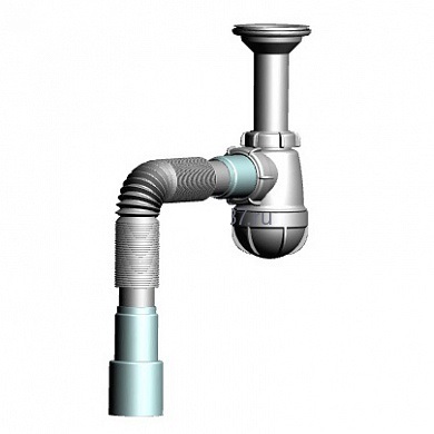 Сифон для кухни малый 1?х40 с удлинённой горловиной с гибкой трубой 40х40-50 S0515