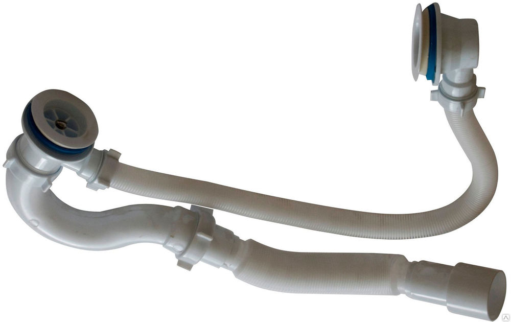 Сифон для ванны трубный с пробкой 1 1/2x40 с гофрой 40х40/50 выпуск с пласт. реш. Орио А-70089