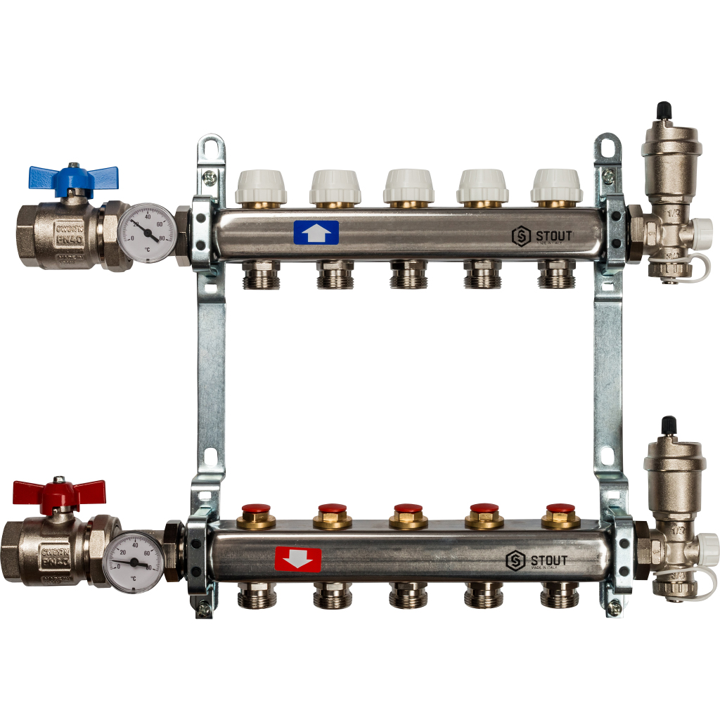 Кол. группа б/расх. 1х-5 вых. нерж. STOUT (комплект)